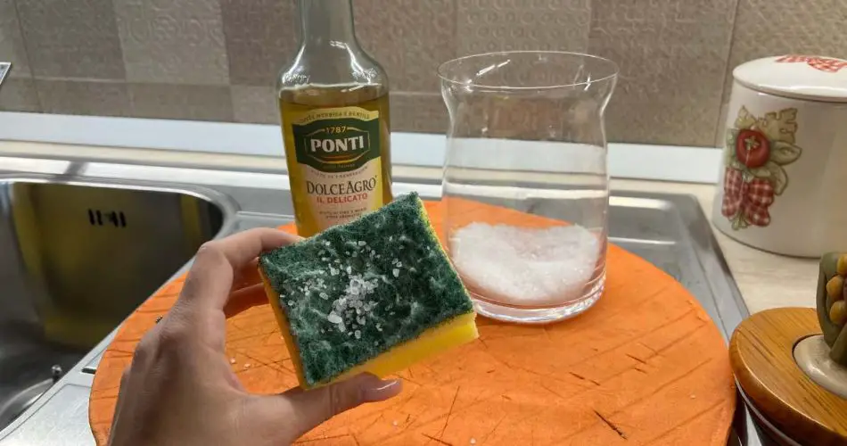 Después de que la mezcla haya hecho su trabajo, vacía la olla o sartén y frota suavemente la superficie con un estropajo . Esto ayudará a eliminar cualquier suciedad incrustada. Finalmente, lava la olla o sartén con agua caliente y jabón para platos para eliminar cualquier rastro de sal y vinagre.